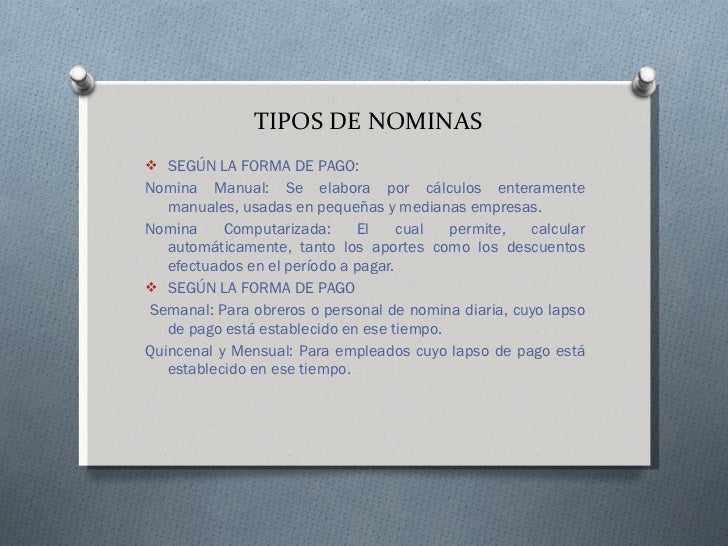 Clases de nómina: depende del objeto social de la empresa, puede tener nómina del personal